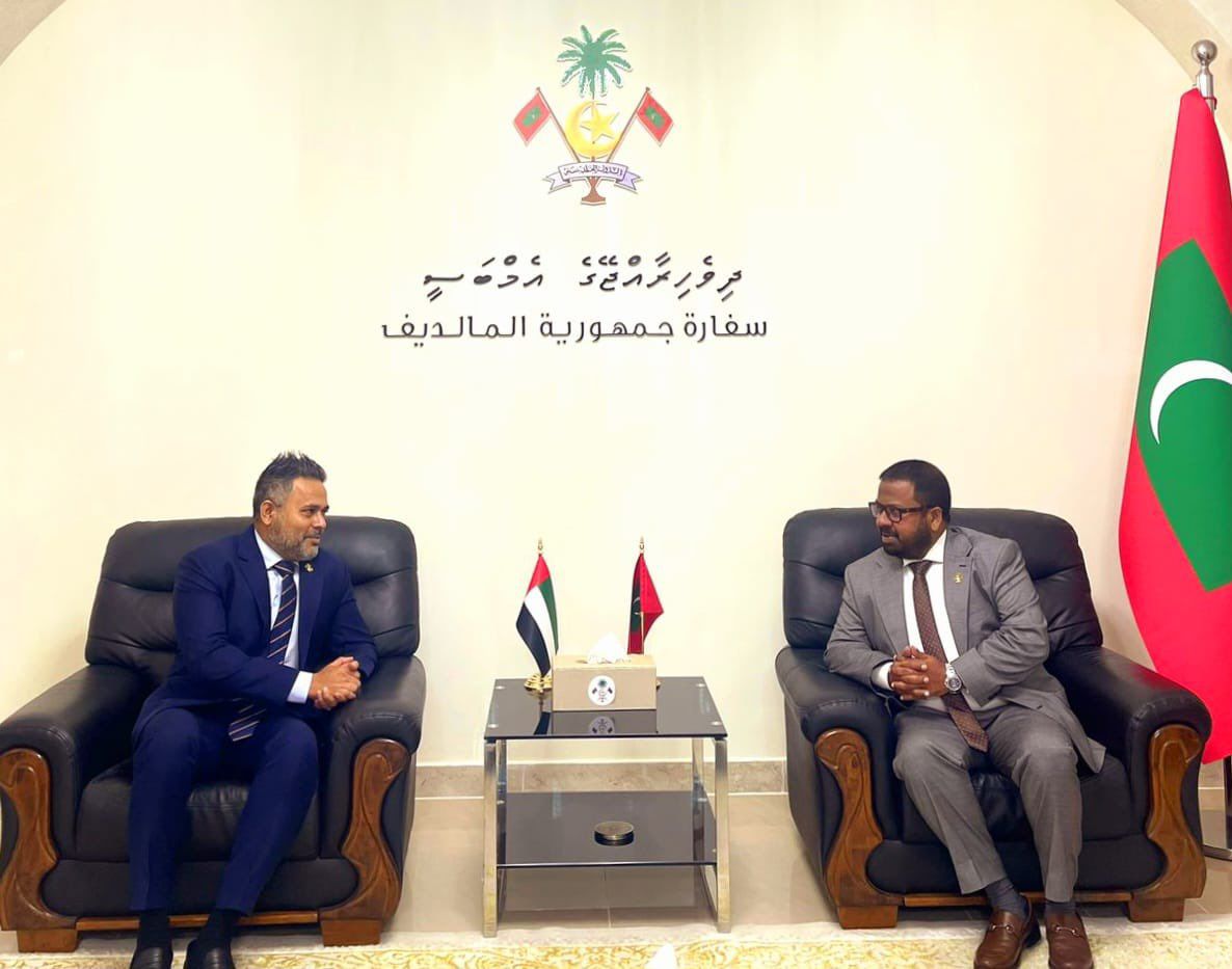 Minister of Fisheries and Ocean Resources, H.E. Ahmed Shiyam visited the Embassy, signed the visitor’s book and met with Ambassador H.E. Mohamed Hussain Shareef and team during H.E.’s official visit to UAE.